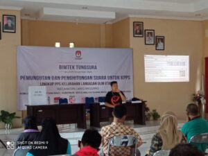 Bimtek Pemungutan Dan Penghitungan Suara Untuk KPPS Lingkup Kelurahan Landasan Ulin Utara Di Aula Kecamatan Liang Anggang, Kamis 03-12-2020
