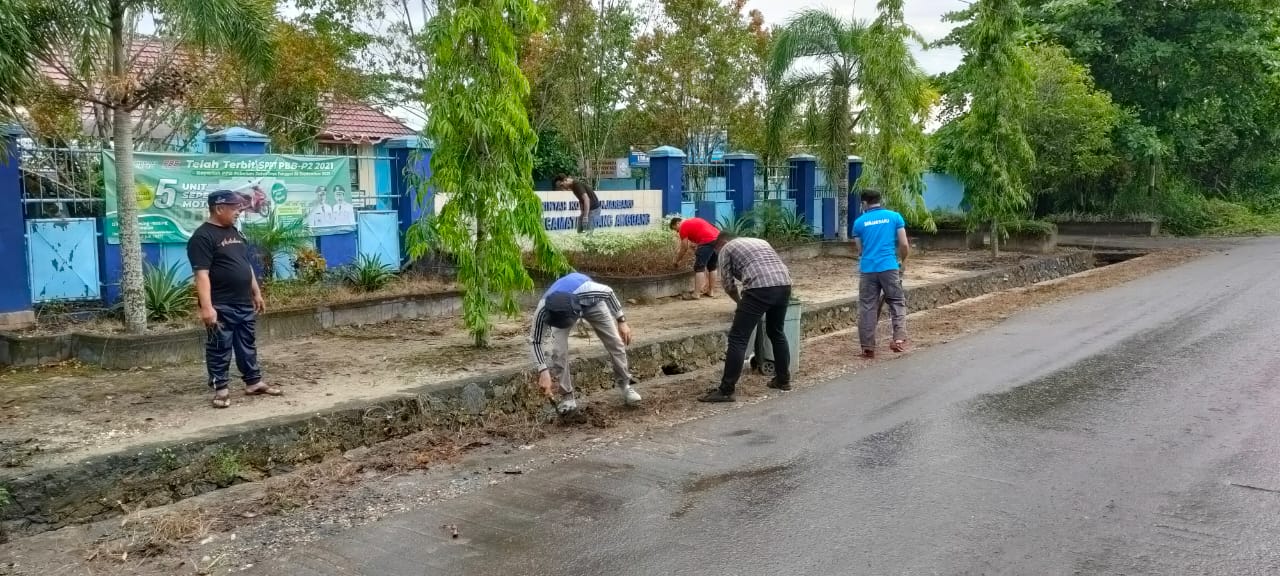 Camat Beserta Karyawan Karyawati Kecamatan Liang Anggang Melaksanakan Gotong Royong Membersihkan Lingkungan Kantor Kecamatan Liang Anggang