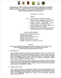Surat Edaran Gubernur dan Forum Koordinasi Pimpinan Daerah serta Kepala Kantor Wilayah Kementrian Agama Provinsi Kalimantan Selatan tentang petunjuk teknis