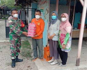 Pembagian Nasi Kotak dari Dinas Sosial Kota Banjarbaru dan Paket Sembako dari Relawan serta Para Donatur kepada warga masyarakat yang sedang menjalani Isolasi Mandiri atau ISOMAN di Wilayah Kelurahan Landasan Ulin Barat. (***/da),