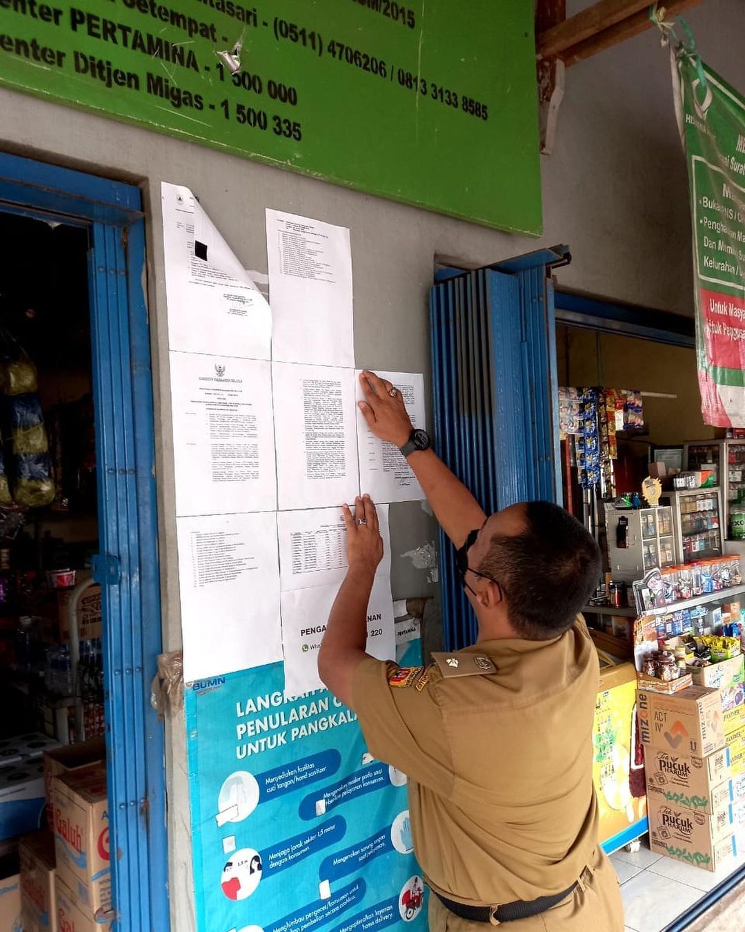 Rabu, 1 September 2021. Lurah Landasan Ulin Selatan Bapak Adi Royyan dan Lurah Landasan Ulin Tengah Bapak Muhammad Anwar sejak Hari Selasa Memulai Giat Pemasangan Surat Edaran dari Gubernur Kalimantan Selatan No:188.44/047/Kum/2015 Tentang Penetapan Harga Eceran Tertinggi LPJ Tabung 3 Kg serta Nomor Telepon Layanan Pengaduan di Handphone masing-masing Kelurahan Se-Kecamatan Liang Anggang. Surat Edaran ini dipasang di tiap-tiap pangkalan LPJ di Kelurahan Landasan Ulin Selatan dan Kelurahan Landasan Ulin Tengah sebagai pengingat dan himbauan agar LPJ Gas terutama yang 3 Kg tidak dijual melebihi harga eceran tertinggi lagi. Diharapkan semua pedagang dan Pangkalan Gas Mentaati himbauan ini.(***/da).
