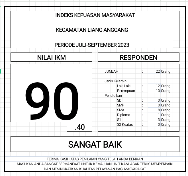 Indeks Kepuasan Masyarakat, Kec. Liang Anggang triwulan ke 3