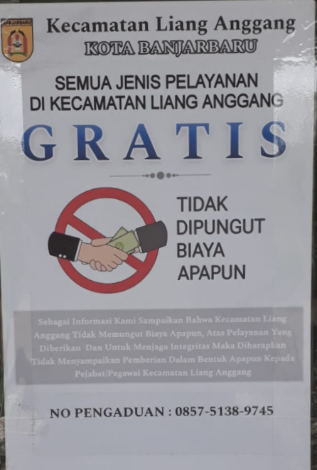 GRATIS !!!,,, Semua Jenis Pelayanan di Kecamatan Liang Anggang (tidak dipungut biaya apapun)