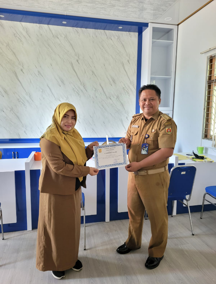 Penyerahan Piagam Penghargaan Kepada Pegawai Negeri Sipil Teladan dan Non ASN Teladan dari Camat Liang Anggang Bapak Taufik Purwanto, S.STP, M.AP