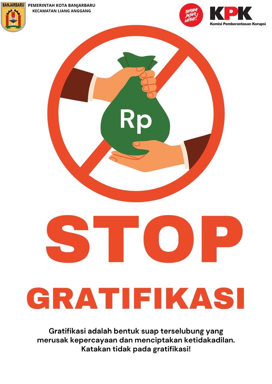 Stop gratifikasi berarti berhenti  memberikan atau menerima sesuatu (uang, barang, fasilitas, dll.) yang berhubungan dengan tugas dan jabatan sebagai bentuk suap atau imbalan yang tidak sah. Gratifikasi  dapat merusak integritas dan profesionalisme, serta dapat mengarah pada tindak pidana korupsi.