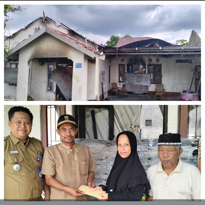 Bersama Forum RT/RW Camat Liang Anggang Menyerahkan bantuan untuk korban kebakaran di Jalan Sukamaju RT 004 Kelurahan Laura