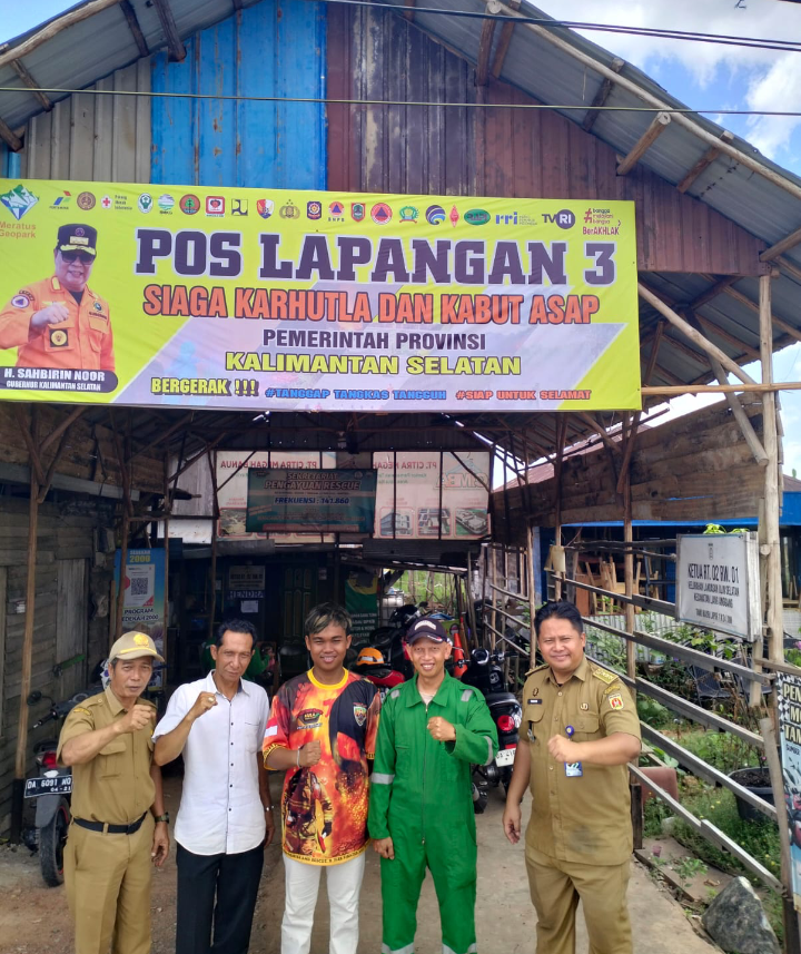 Camat Liang Anggang Taufik Purwanto, S.STP, M.AP, bersama Kasi Tramtib Kecamatan melaksanakan Monitoring ke Pos lapangan 3 Kalhutla di Pengayuan Kelurahan Landasan Ulin Selatan ” STOP MEMBAKAR LAHAN, MEMBAKAR LAHAN DAPAT PIDANA “